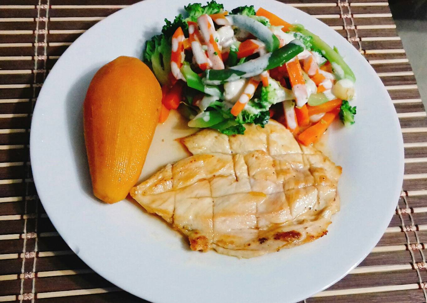 Hello everybody, it is Louise, welcome to our recipe site. Today, I'm gonna show you how to make a special dish, Filete de pollo, ensalada y camote glaseado. One of my favorites food recipes. For mine, I will make it a bit unique. This is gonna smell and look delicious.
