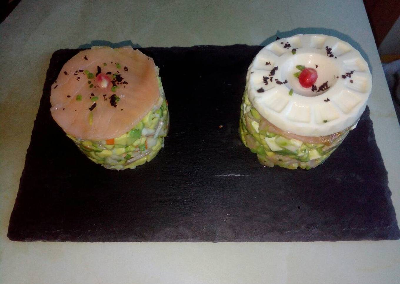 Tartar de aguacate con salmón ahumado y queso de burgos