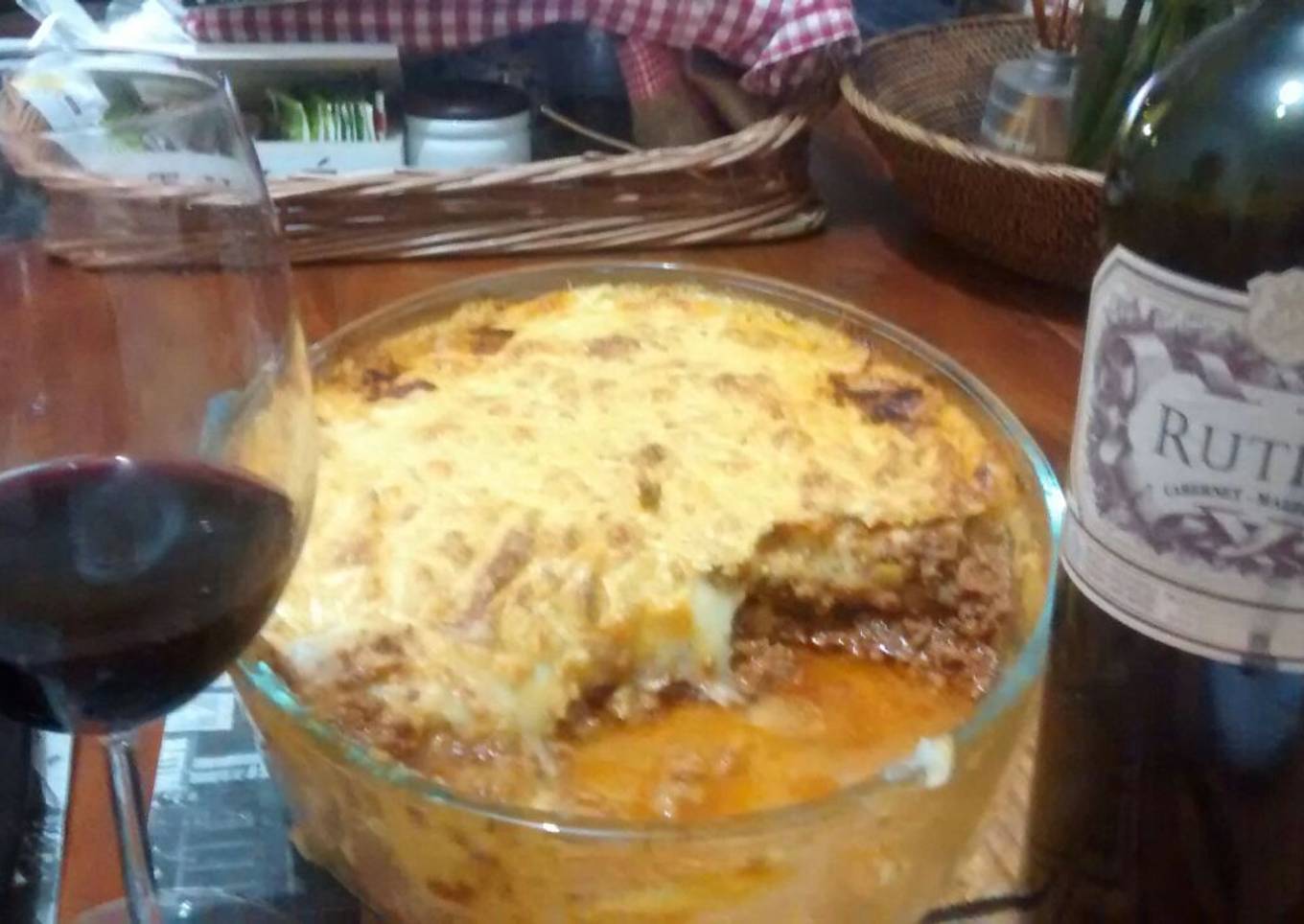 Pastel de mandioca con carne gratinado