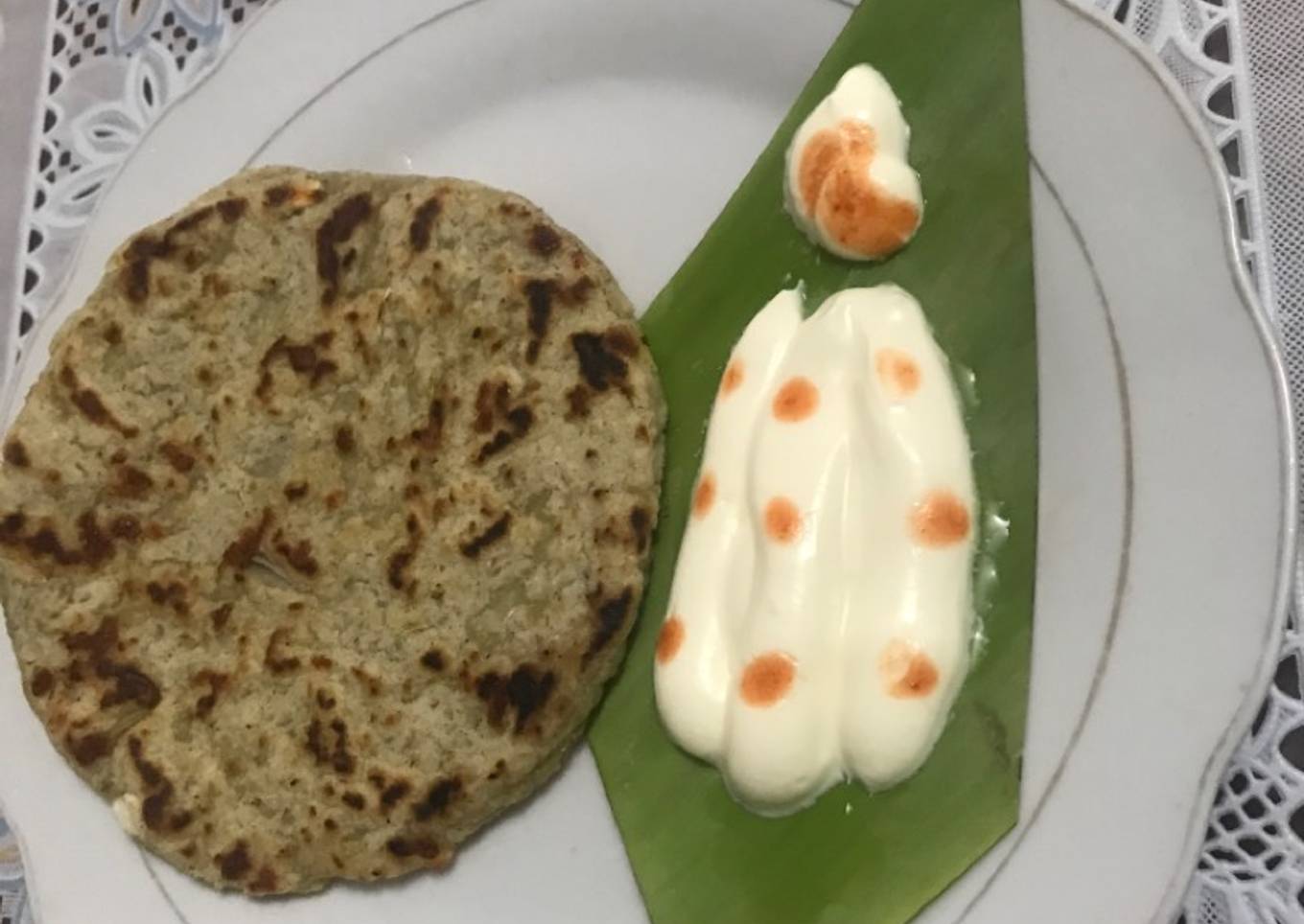 Desayuno con arepa de plátano verde