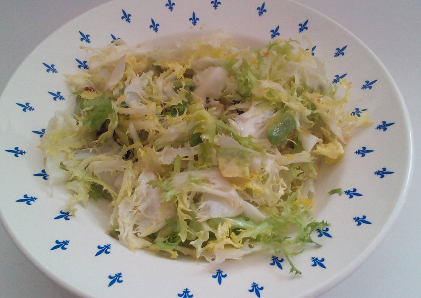 - Introducir los cuatro ingredientes (escarola, ajos tiernos, aceite, sal) y mezclar. Después añadir los trozos de aguacate y remover de nuevo.