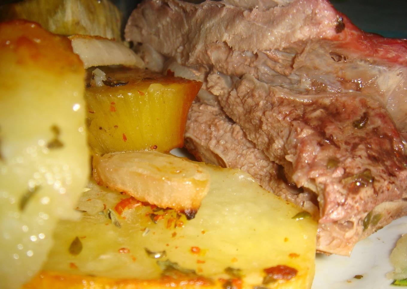 Vacío al horno con papas y batatas