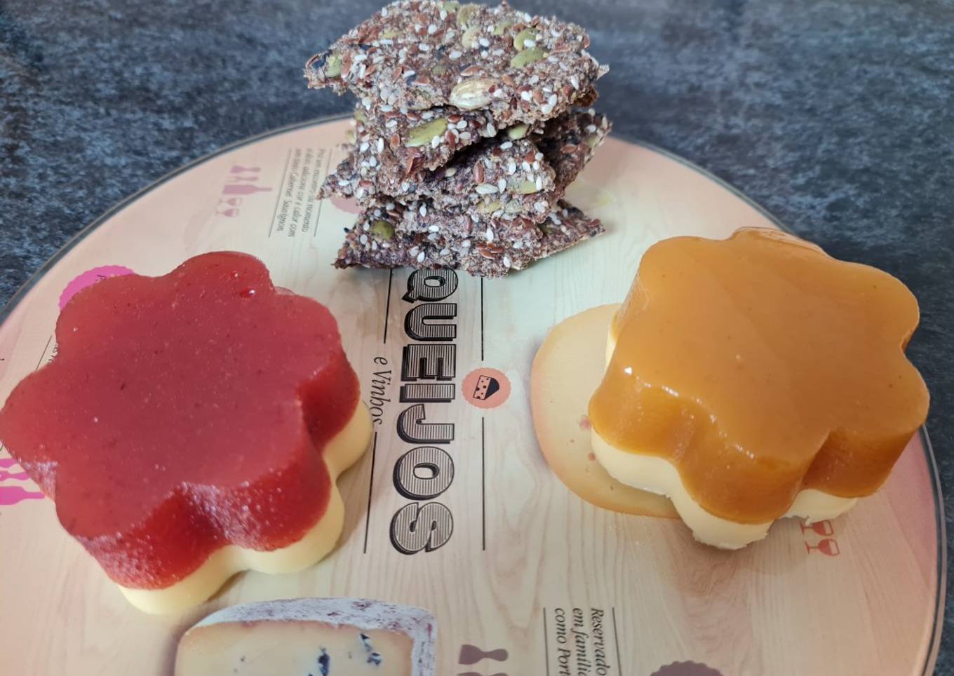 Como la publicación quedaba muy exigua con solo unas fetas de queso y dulce, le agregué unas galles rústicas de semillas. Además tanto los dulces, especialmente el membrillo, como el queso producen estreñimiemto, así que... ¿qué mejor agregar semillas para compensar? 😉