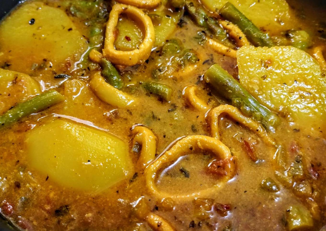 Ingredients and spices that need to be Take to make ANILLOS de Calamar 🦑Guisados con Papa...!: